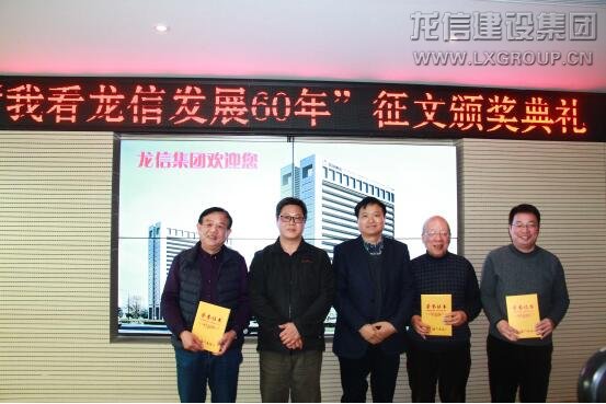 龍信集團(tuán)董事長陳祖新發(fā)表了熱情洋溢的講話,陳董首先向關(guān)心龍信發(fā)展的各界人士表示感謝,對本次征文比賽獲獎人員表示祝賀。向大家介紹了集團(tuán)發(fā)展歷程,龍信成立于1958年,是海門最早成立的建筑施工企業(yè),公司一直堅(jiān)持以建筑為主業(yè),常年奮戰(zhàn)在全國各地,近年來參與家鄉(xiāng)建設(shè),為家鄉(xiāng)人民提供高品質(zhì)全裝修住宅和一流的服務(wù)。目前集團(tuán)四板塊一中心聯(lián)動發(fā)展,形成“建筑產(chǎn)業(yè)化、綠色建筑、全裝修成品住房、養(yǎng)老產(chǎn)業(yè)”四張王牌優(yōu)勢。面對激烈的市場環(huán)境,建筑企業(yè)需不斷創(chuàng)新,變革發(fā)展,未來通過上市進(jìn)一步規(guī)范企業(yè)管理,使得企業(yè)健康長久發(fā)展。陳董談到,龍信的發(fā)展還得益于優(yōu)秀文化的支撐,從創(chuàng)業(yè)之初的“老實(shí)做人、實(shí)在做事”的務(wù)實(shí)作風(fēng),到現(xiàn)在持續(xù)創(chuàng)新、追求高效、合作共贏,無不體現(xiàn)著龍信與時(shí)俱進(jìn)的作風(fēng)。未來,龍信將為實(shí)現(xiàn)百年企業(yè)努力奮斗。隨后,海門市委宣傳部副部長、海門日報(bào)社社長沈健生,總編范軍、副總陳松,龍信集團(tuán)董事長陳祖新、總經(jīng)理唐愛東、副總經(jīng)理何咸軍等為本次“我看龍信發(fā)展60年”征文比賽中榮獲一、二、三等獎的獲獎人員頒發(fā)獎金和證書并合影留念。獲獎代表上臺發(fā)表講話。他們紛紛表示與龍信有著不解之緣,多年來一直關(guān)注龍信的發(fā)展,通過這次征文活動,對龍信有了更為直觀的了解。獲獎代表共同祝愿龍信發(fā)展騰飛,期待實(shí)現(xiàn)百年龍信的宏偉目標(biāo)!最后,所有嘉賓在龍信大廈前合影留念。
